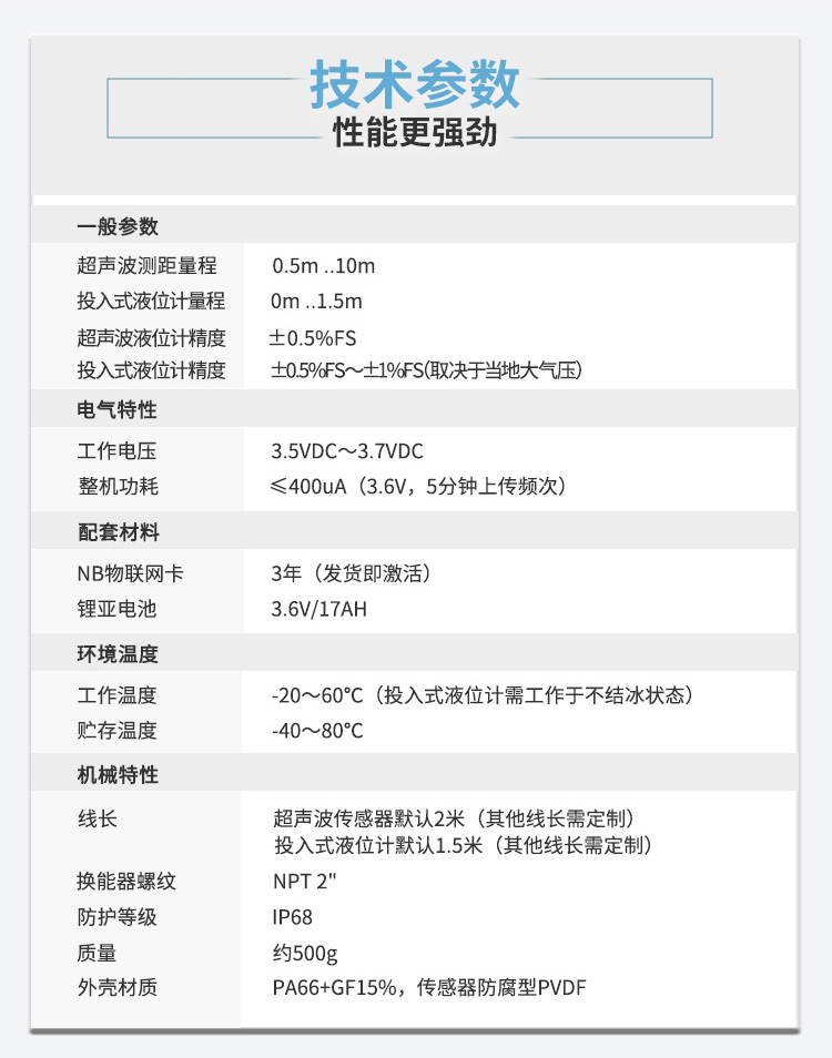 應(yīng)用:應(yīng)用于城市窨井水位監(jiān)測(cè), 超低功耗