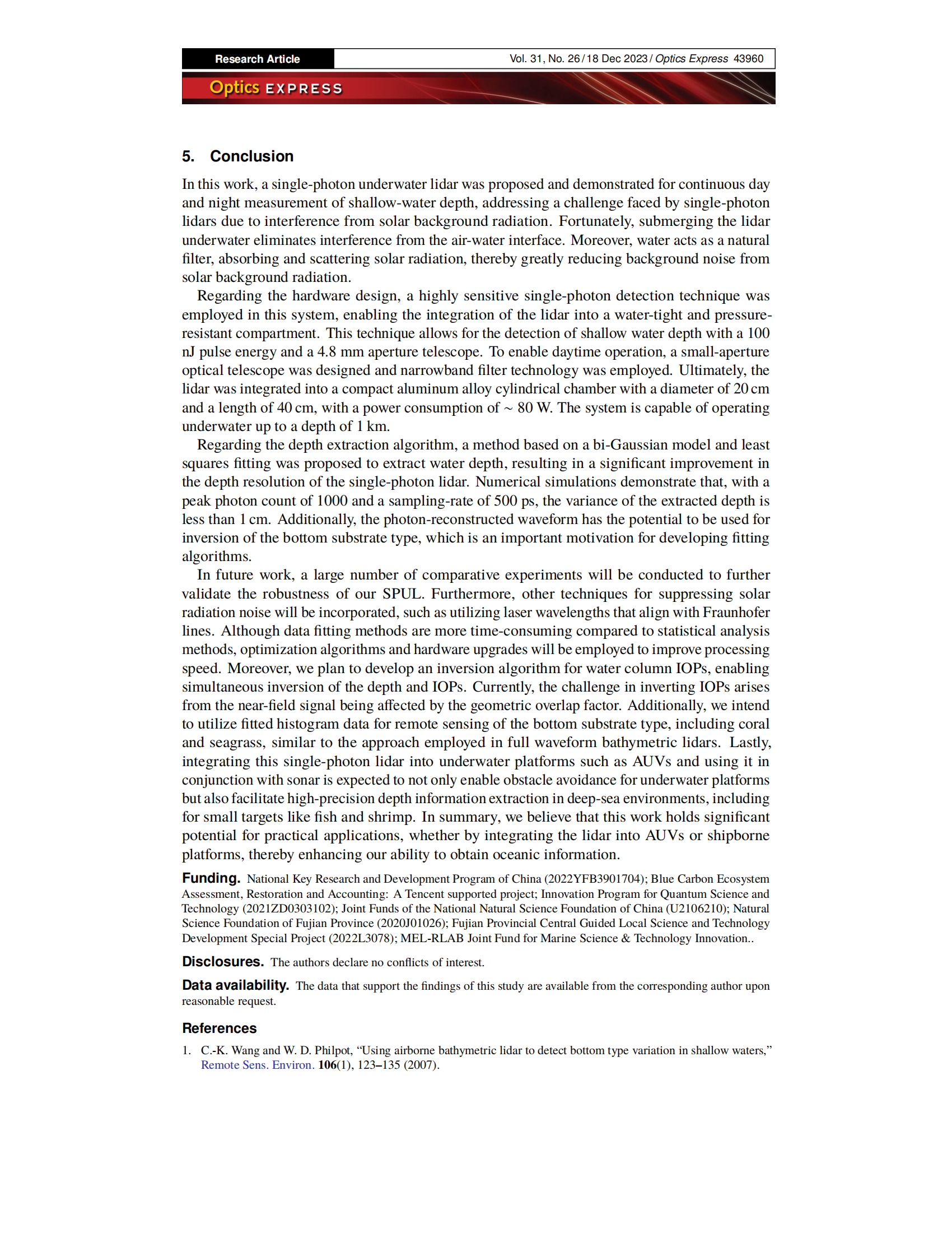 廈門(mén)大學(xué)上官明佳教授發(fā)表于美國(guó)國(guó)家光學(xué)雜志的文章,里面用了福州大禹電子的聲吶測(cè)試數(shù)據(jù)和他的水下測(cè)距激光雷達(dá)進(jìn)行互相驗(yàn)證。